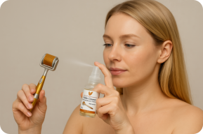 ANTES DE COMENZAR1.Limpia la piel a tratar con jabón antibacterial y secarla bien.2.Asegúrate de tener a mano: Dermaroller, Roller Cleaner y algodón.